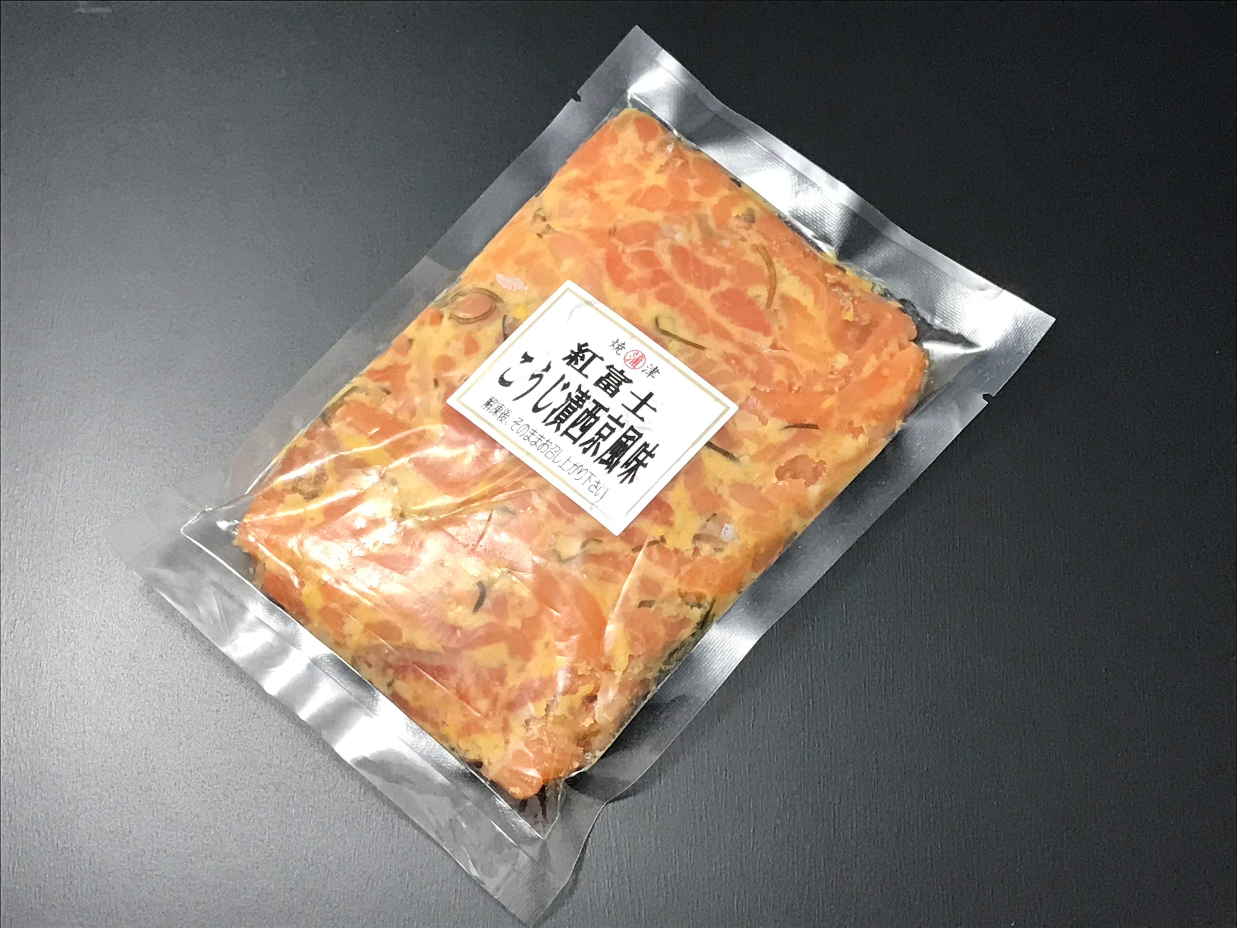 この「紅富士」の身味を生かすために、こうじと西京味噌の甘みで味付け。また「きざみ昆布」を使う事により、味にアクセントを与え、更に「紅富士」のうま味との相乗効果が生まれます。