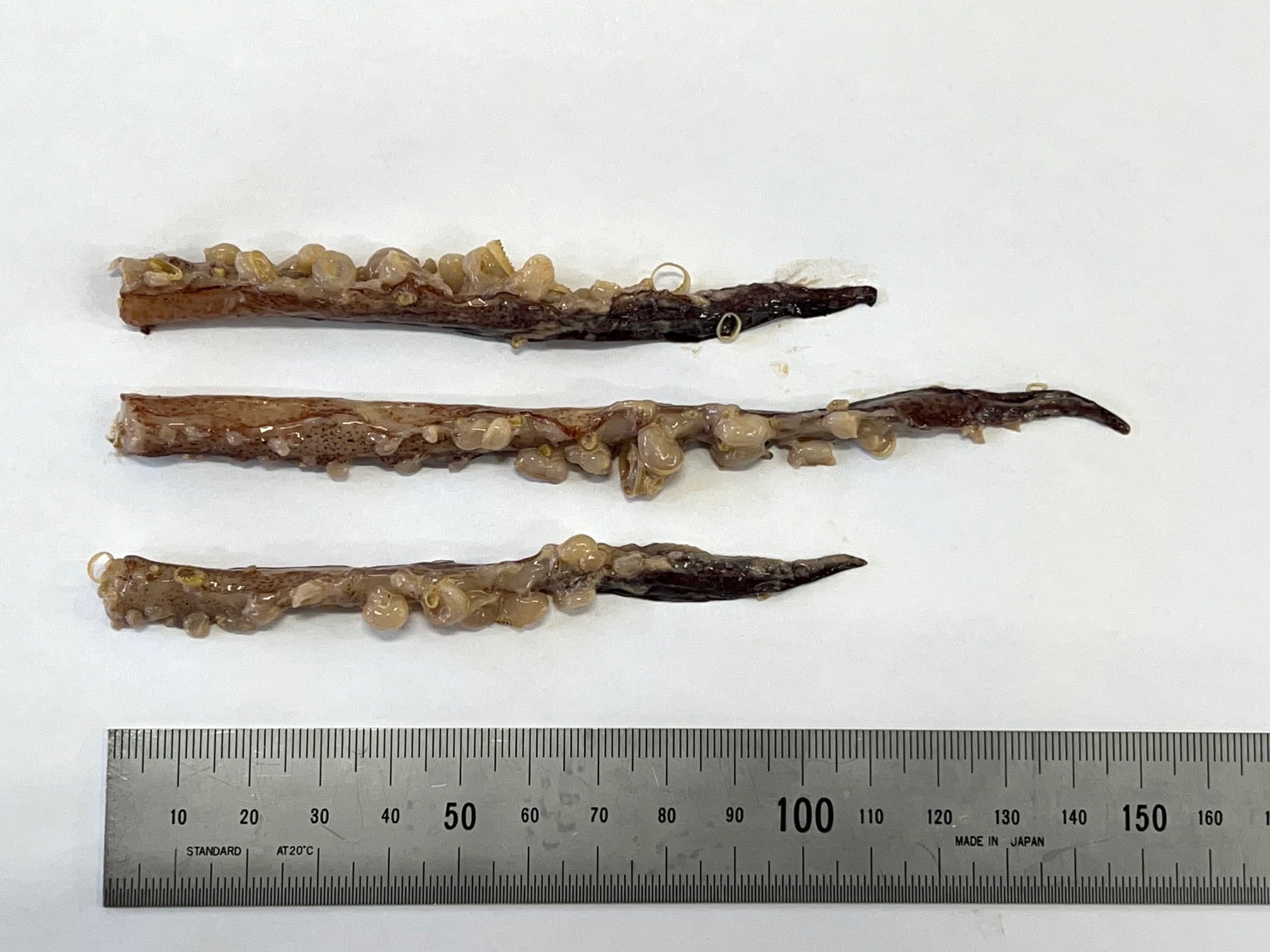 ゲソの長さは10~15㎝程、狙う魚種によって、そのまま、あるいはカットしてお使いください。